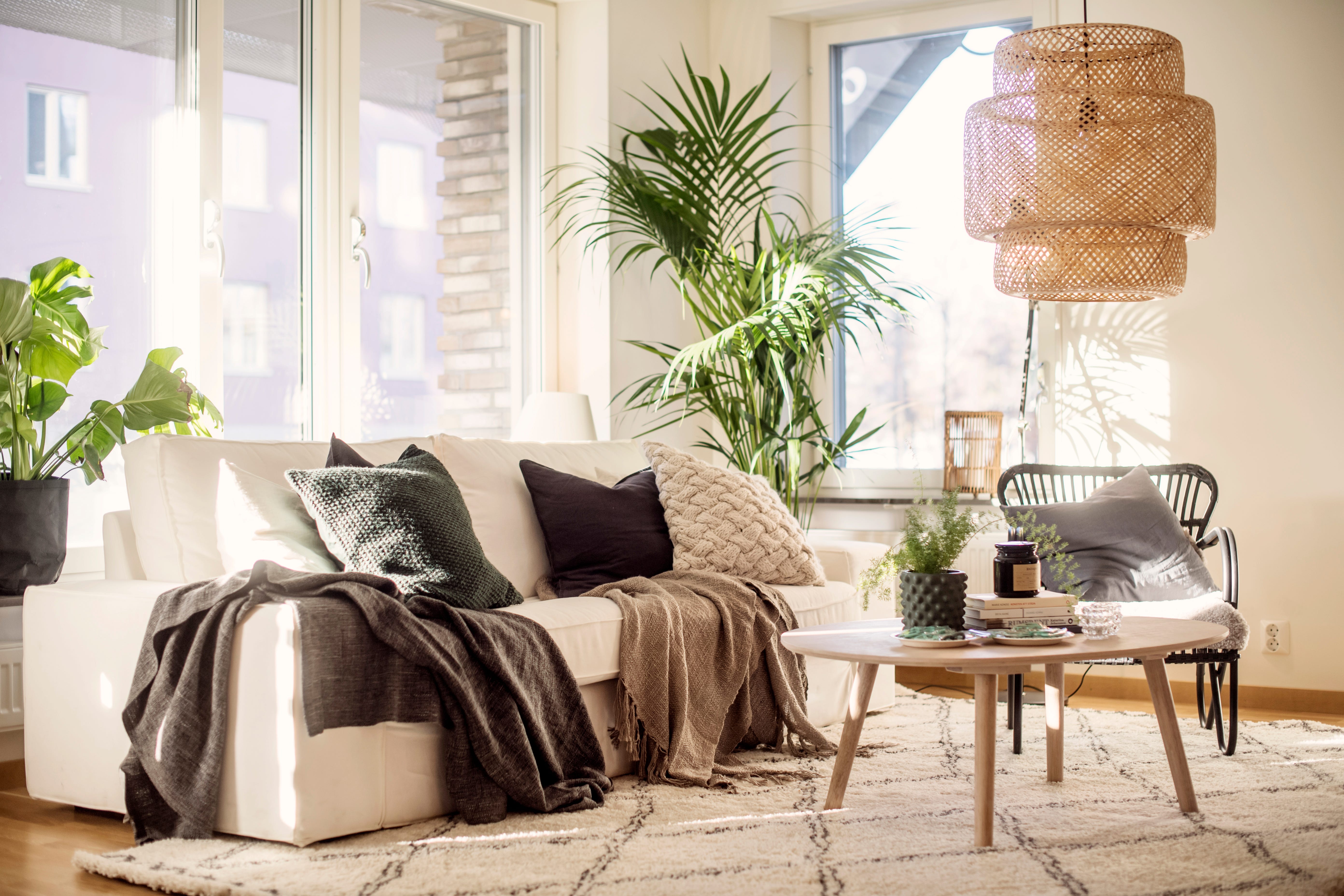 Jei nusprendėte butą papuošti didesne palme ar panašaus dydžio žaliuojančiu augalu, statykite jį ant grindų arba ant nedidelės pakylos tuštesnėje buto vietoje. Tokie augalai, pasodinti į šviesius ar su interjero spalvomis derančius vazonus, patalpai suteiks daugiau erdvės ir pojūtį, kad butas apstatytas įdomiai ir apgalvotai. Be to, parduotuvėse galima rasti vis daugiau didelių kambarinių augalų ir net dekoratyvinių medžių, tokių kaip europiniai alyvmedžiai ar atogrąžų vaismedžiai. Palmės, dekoratyviniai krūmai ir įvairūs stambiažiedžiai kambariniai augalai jūsų butui taip pat suteiks gyvumo.
